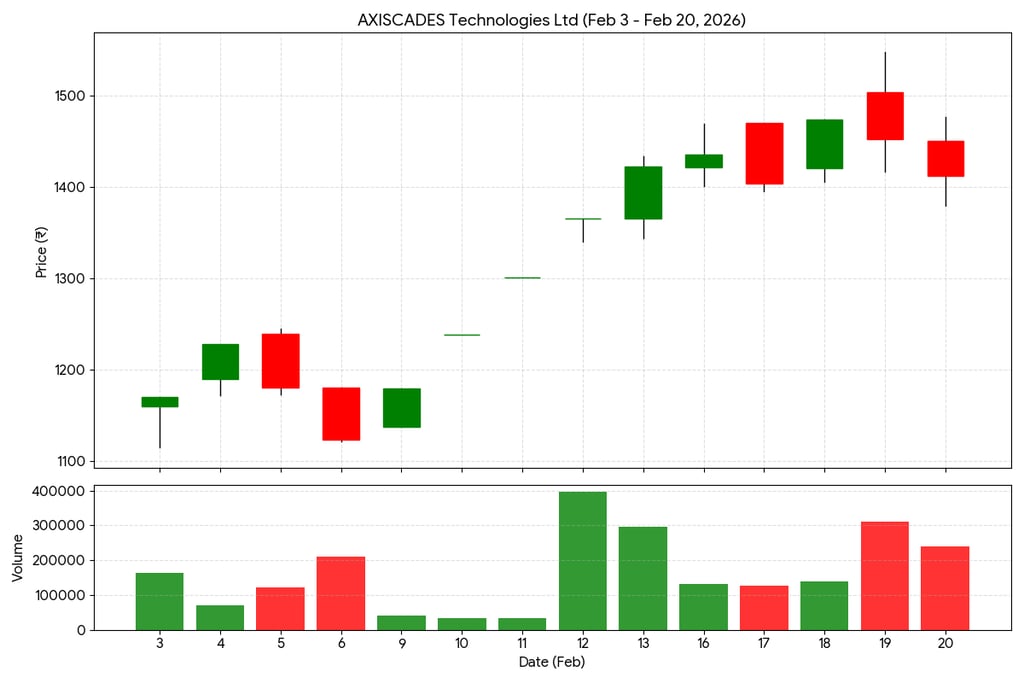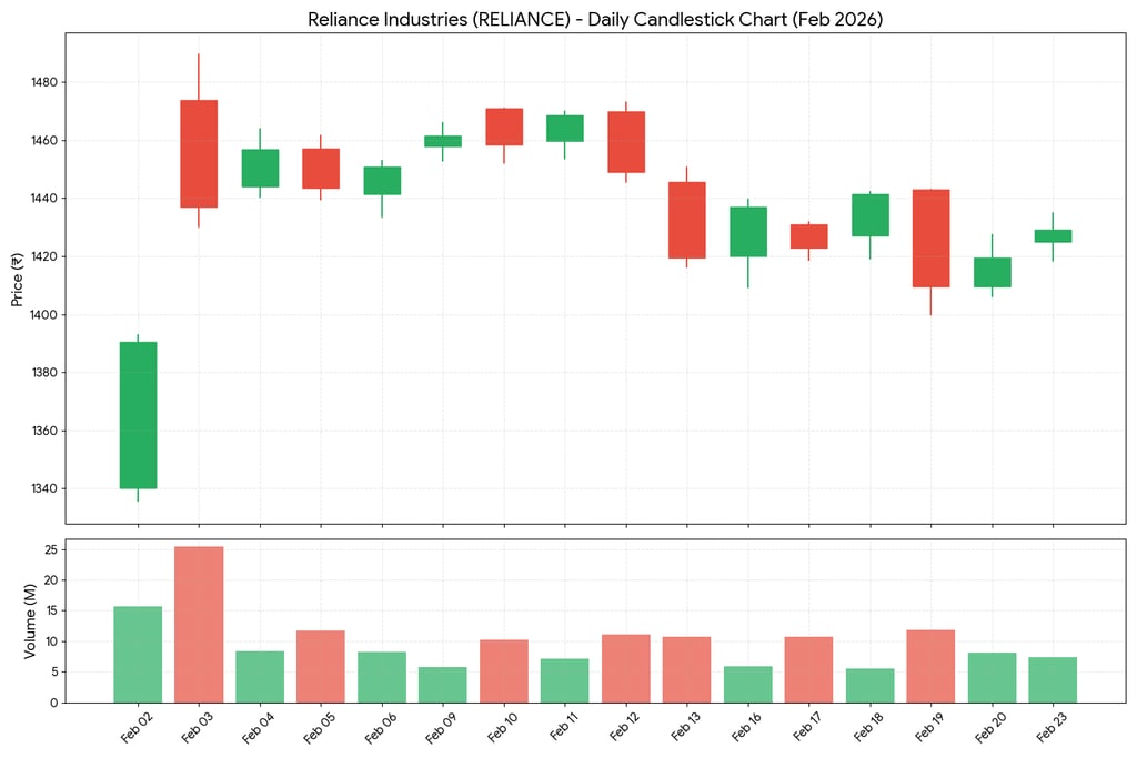 Support Level: The stock has established a strong psychological support around the ₹1,400 mark, bouncing back every time it dipped near that level (notably on Feb 19th).
