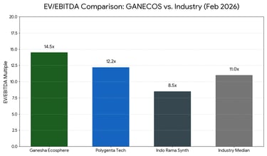 Premium Justification: The valuation gap between GANECOS (14.5x) and the industry median (11.0x) is driven by the company's high barrier-to-entry "bottle-to-bottle" technology and FDA-approved recycling processes, which traditional peers lack.