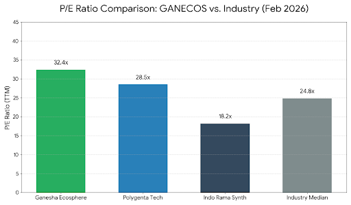 As of February 25, 2026, Ganesha Ecosphere’s EV/EBITDA multiple around 14.5x reflects a premium valuation compared to broader textile and recycling peers, which average near 11.0x. This multiple indicates that the market is placing a higher value on the company's specialized recycling infrastructure and dominant market share, despite recent margin pressures. While the valuation is higher than traditional polyester manufacturers, it remains aligned with specialized chemical and environmental service players, signaling that investors expect a margin rebound as new high-value capacity comes online in mid-2026.