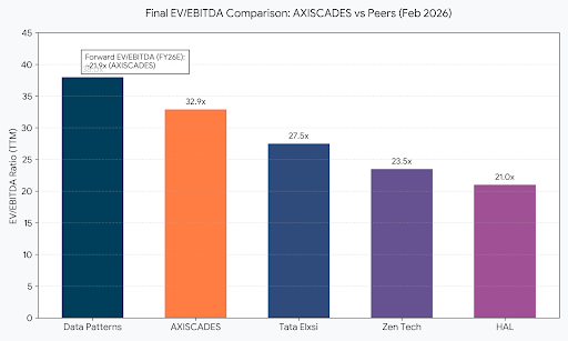 The EV/EBITDA ratio is particularly useful here because it accounts for the debt levels of these companies. Since AXISCADES recently reduced its debt via a QIP, its Enterprise Value (EV) more closely aligns with its market cap.